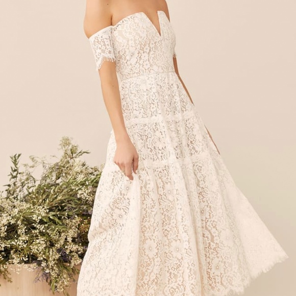 White Lace Off-the-Shoulder Midi Dress. Never got wear it. My pictures doesn’t do justice because is just beautiful