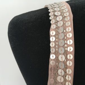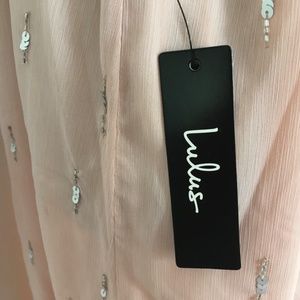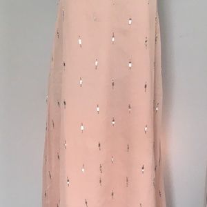 Feminine soft ankle length dress. Soft pink color with silver appliqué.