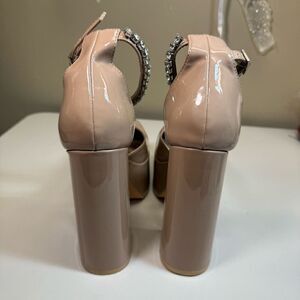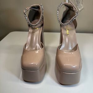 Zastyy Light Nude Patent Rhinestone Platform Pumps