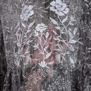 - semi-sheer heathered grey, white floral embroidery