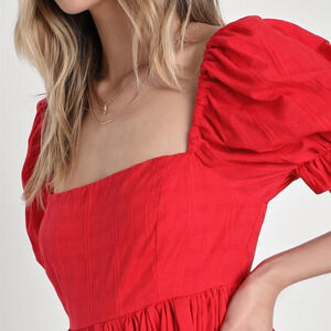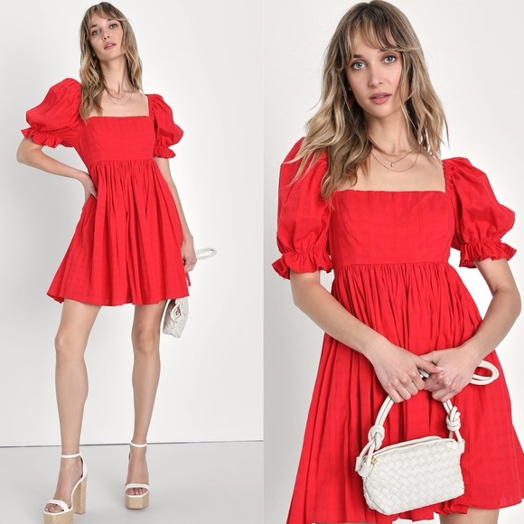 Lulu’s A Day in Paris Red Square Neck Puff Sleeve Babydoll Dress