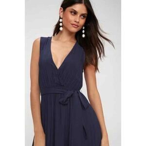 Lulus Abigail Maxi Dress S Surplice V-Neck Sleeveless Long Elastic Waist Navy