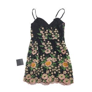 Lulus Abloom With Love Black Floral Embroidered Mini Dress S
