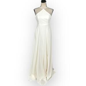 Lulus Absolutely Breathtaking Halter Gown Women's XS Off White Maxi Sleeveless