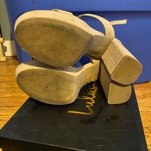 Lulus Acee Natural Suede Platform Heels Beige - Size 8