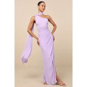 Lulus “Adeline” Lavender One-Shoulder Scarf Maxi Dress – Medium NWOT