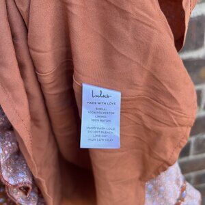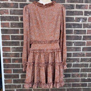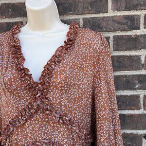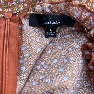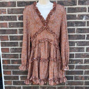 Lulus Admire You Floral Ditsy Print Mini Dress Sz L Ruffled Orange Long Sleeves