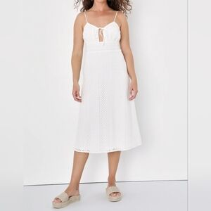 Lulus Adored Aura White Eyelet Embroidered Cutout Midi Dress
