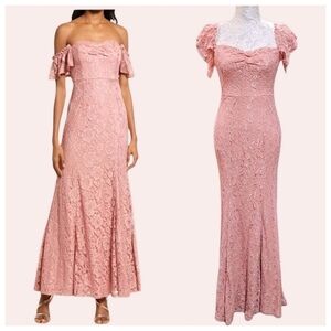 Lulus Adoring Hearts Lace Off The Shoulder Maxi Dress Size XS Bodycon Boho Prom