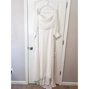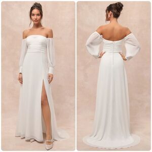 Lulus Adorna White Off-the-Shoulder Maxi Dress NWT Size Large Wedding Bridal