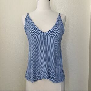 Lulus Adrift Navy Blue and White Striped Tank Top mini stripe keyhole back side cutouts double strap, Size M. Good used condition. First 4 photos are stock photos to show fit and detail only.