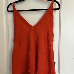Lulus Exclusive! Get lost at sea and enjoy every minute in the Lulus Adrift Rust Orange Tank Top! Lightweight and gauzy woven rayon is slightly sheer over double spaghetti straps, and a wide-cut triangle bodice with cute side cutouts, and a tying back.