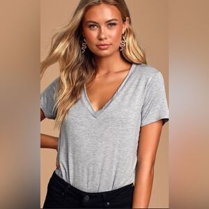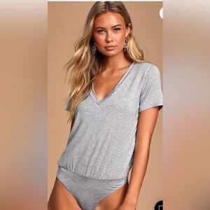 Lulu's Adyn Heather Grey V-Neck T-Shirt Bodysuit NWT Size Small Style 91 NWT