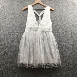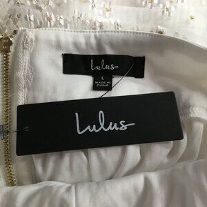 Lulus Ailey Daisy Skater Dress Gold Ivory L