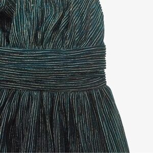 Sheer fabric with shiny teal and gold lurex threading over solid teal lining