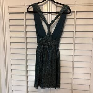 Lulu’s Ailey Gold and Teal Blue Skater‎ Dress Size Small