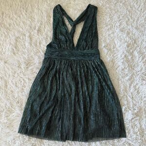 Lulus Ailey Metallic Stripe Twist Back Cocktail Dress in Gold and Teal Size S