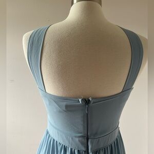 Lulus Air of Romance Maxi Dress M Slate Blue Sky Blue Chiffon Full Length Halter