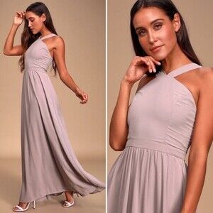 Lulus Air of Romance Maxi Dress Taupe Elegant Sleeveless Womens Size Small
