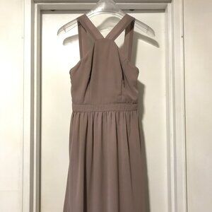 Lulus Air of Romance Taupe Halter Maxi Bridesmaid Gown Women’s Size Small Dress