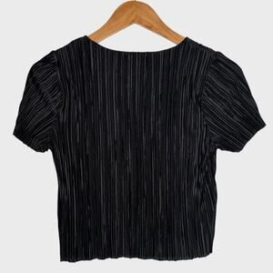 Lulus Albright XS Black Satin Pleated Top Short Sleeve Cropped Blouse Minimalist