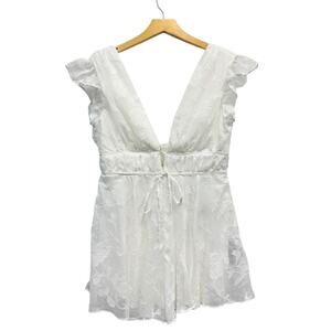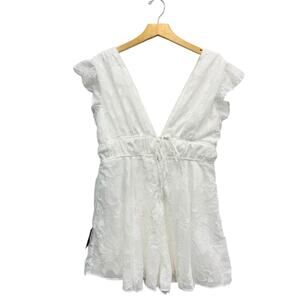 Lulus All About The Flowers White Burnout Floral Ruffled Romper size Large NWT