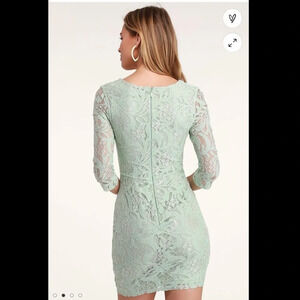 Lulus Exclusive! Make date night extra special with the Lulus All For You Mint Green Lace Bodycon Dress! Lovely lace overlay tops a matching knit liner across a rounded neckline, darted bodice, and sheer three-quarter sleeves. Figure-flaunting bodycon skirt hugs your curves to the perfect mini length. Hidden back zipper/clasp.
