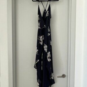 Lulus All Mine Navy Blue Floral Print High-Low Wrap Dress X-Small XS