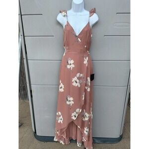 Lulus All Mine Rusty Rose Floral Print High-Low Wrap Maxi Dress Small New!!