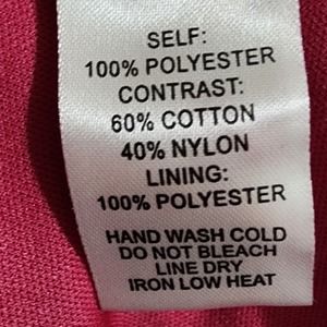 Self & Lining: 100% Polyester. Contrast: 60% Cotton, 40% Nylon.
