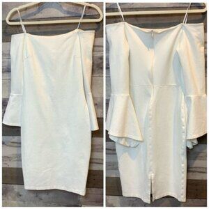 Lulus ✦ “All She Wants” White Off-Shoulder Bodycon Midi Dress ✦ Bell Sleeves S