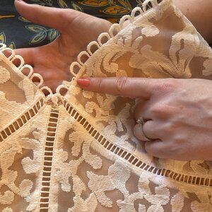 Lulu’s Alluring Love White and Beige Lace Trumpet Hem Midi Dress - XL
