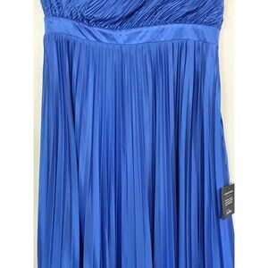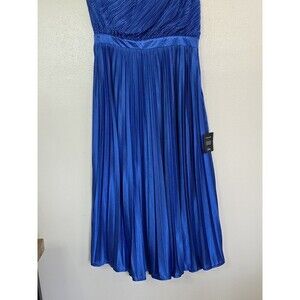 The Lulu's Alluring Marvel Royal Blue Pleated Satin One-Shoulder Midi Dress in size L is the perfect choice for a formal event or wedding. Made of polyester satin with a solid blue color, this sleeveless dress features a one-shoulder neckline and a zip closure. The pleated accents add a touch of elegance, while the A-line silhouette flatters all body types. Ideal for the modern woman who exudes sophistication and style, this dress is a must-have for any special occasion. Perfect for the 80s, 90s, or contemporary formal events, this dress is a statement piece that will make you stand out in the crowd.