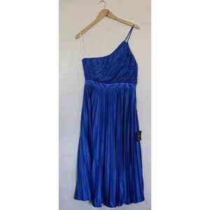 Lulu's Alluring Marvel Royal Blue Pleated Satin One-Shoulder Midi Dress LARGE