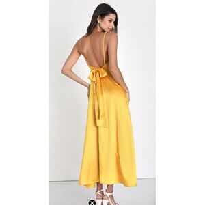 Lulus Always Audacious Marigold Yellow Satin Tie-Back Wrap Around Midi Dress XL