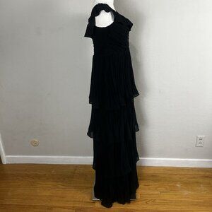 Lulus Always Remarkable Pleated Tiered Maxi Dress Off Shoulder NWOT - black. Size medium. Fits well - 34D, 5 5, 140 lbs.