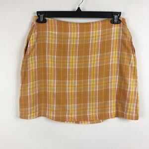 Lulu's Always Sunshine Mini Skirt Large Orange Multi Plaid High-Waisted