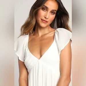 Lulus Amalfi Coast White Pleated Flutter Sleeve Mini Dress Size XL