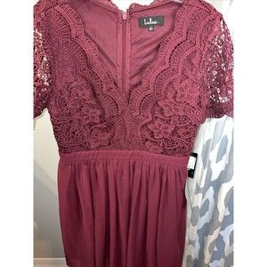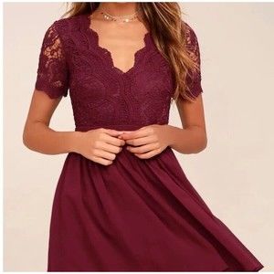 Lulus Angel in Disguise Burgundy Lace Lined Skater Dress Holiday New Year L NEW