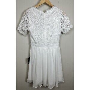 Lulu's Angel in Disguise White Lace Fit Flare Dress Short Sleeve Women’s Small