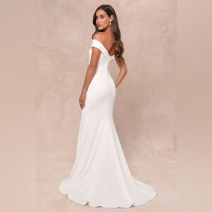 Lulus Arienne White Off-the-Shoulder Mermaid Maxi Dress Size Medium NEW NWT