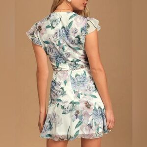 Lulus Art of Love White Multi Floral Print Ruffled Mini Dress Womens size m