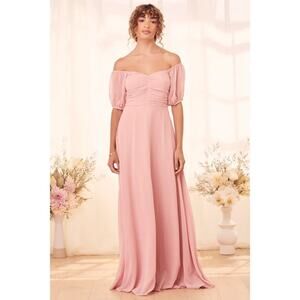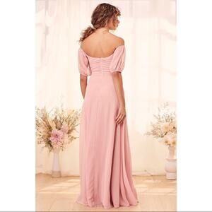 Lulus As I Saw You Off-the-Shoulder Puff Sleeve Maxi Dress in Rose Pink
