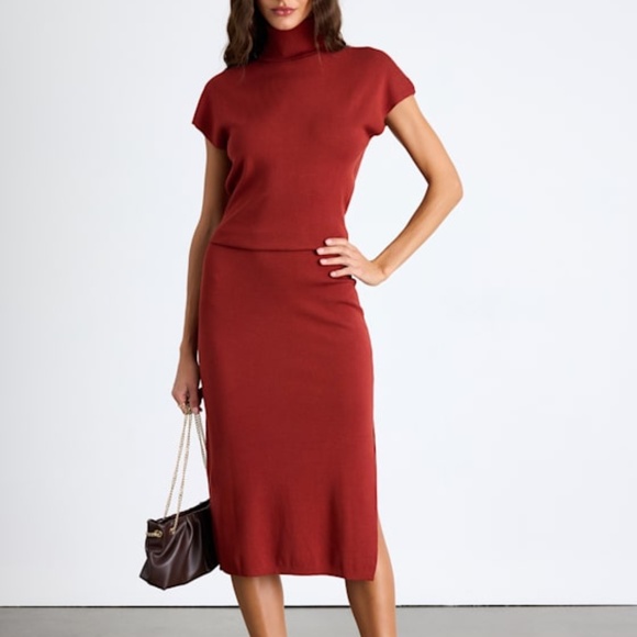 Lulus Ashford Rust Red Turtleneck Short Sleeve Sweater Midi Dress - Size M