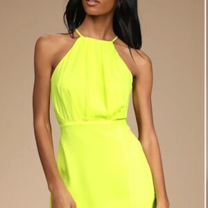 Lulus Attention Lover Neon Green Sleeveless Halter Mini Dress - Size M