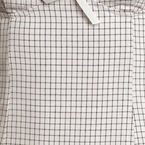 -Woven cotton, with an allover black tattersall plaid pattern, creates a bustier-style bodice with seamed cups and sweet white bow accent, all supported by adjustable spaghetti straps that crisscross at back.