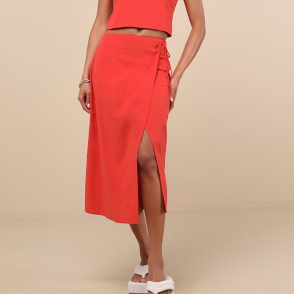 Lulus Aubin Red Column Wrap Midi Skirt - Size S