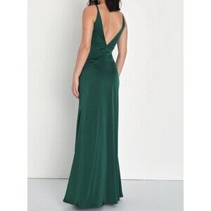 Lulus Aura Emerald Green Sleeveless Satin Maxi Dress Party Wedding HOCO Prom-XS