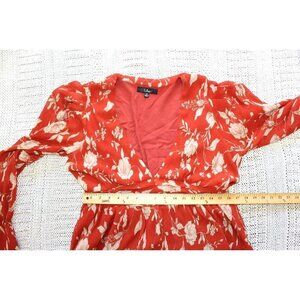 Lulus Autumn Dreams Rust Orange Floral print Mini dress Size XL long sleeves