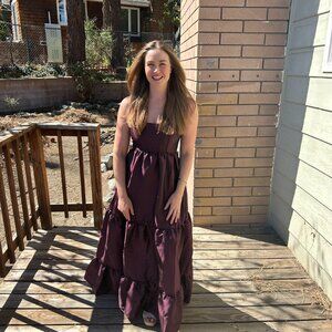 Lulus Avalie Plum Purple Tiered Bustier Maxi Dress - Size S